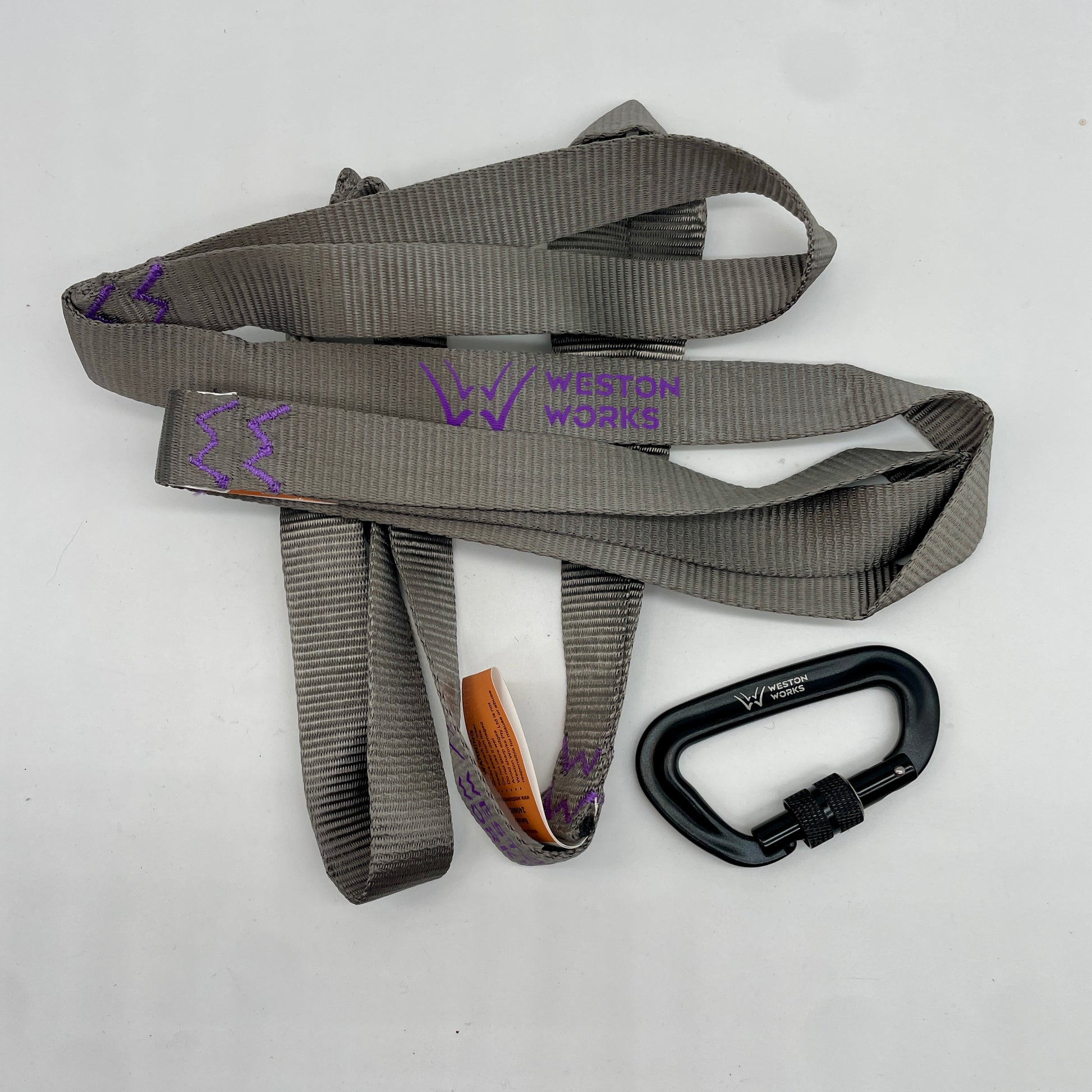 - 12KN carabiner included. Join two straps for a 1.5m extension.